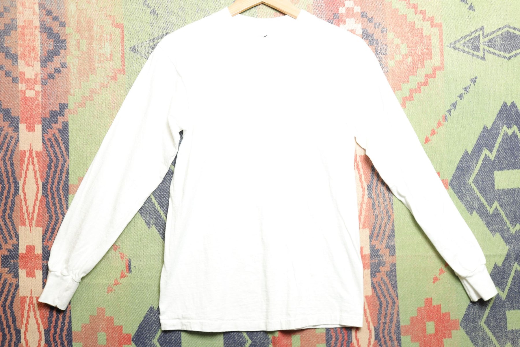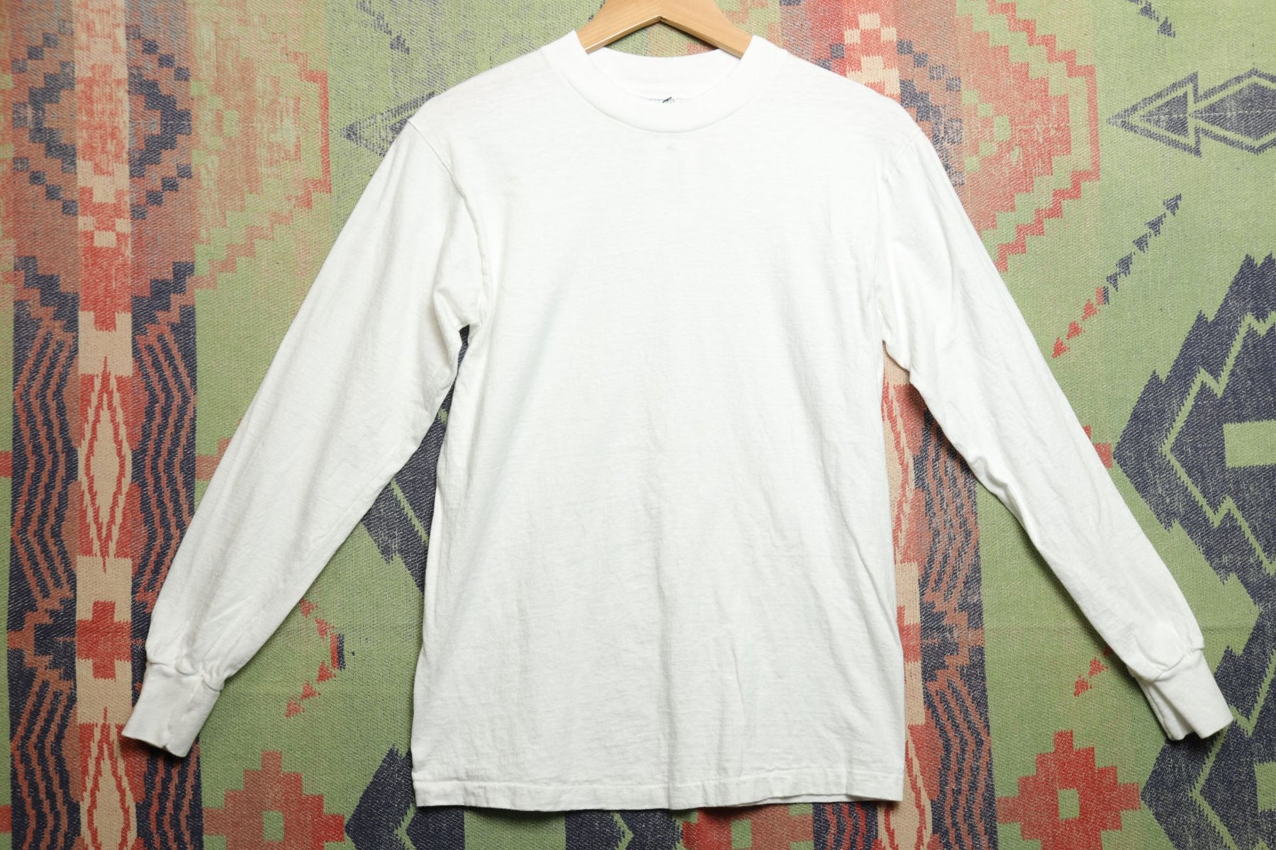 Hanes Vintage White Long Sleeve T Shirt Small 80s
