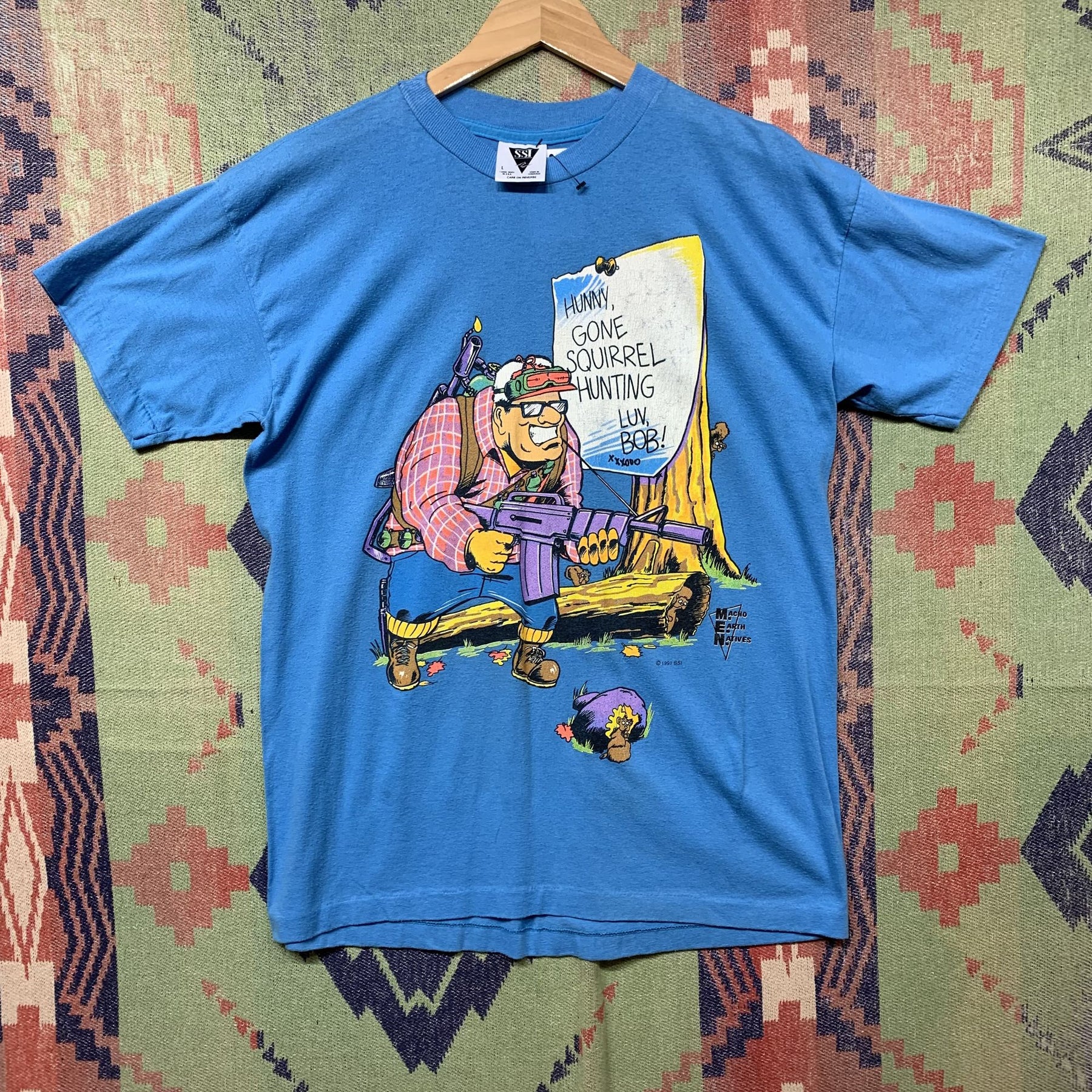 Squirrel Hunting Machine Gun Vintage T Shirt Large 90s